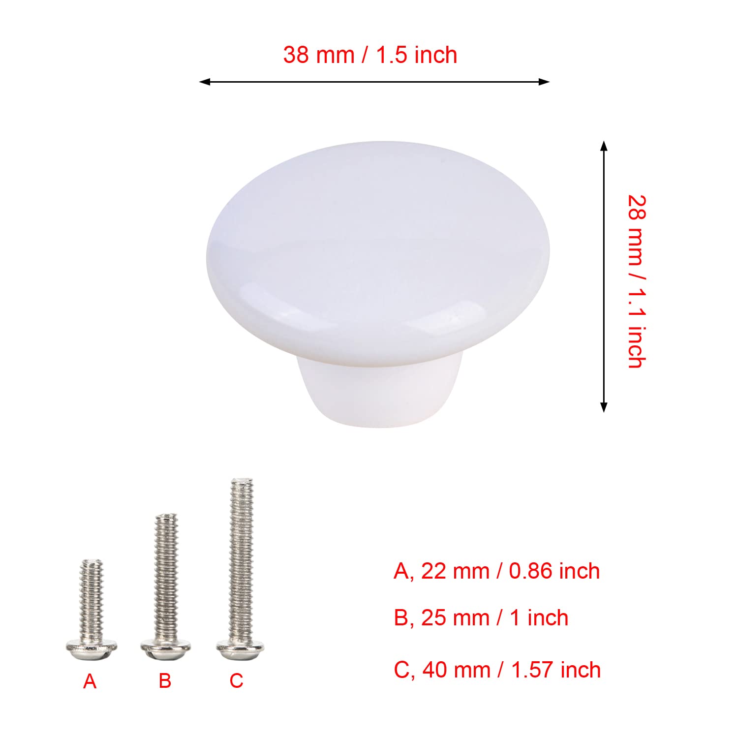 - Package: 15pcs Knobs + 45 Screws (15pcs 22mm,15pcs 25mm,15pcs 40mm)